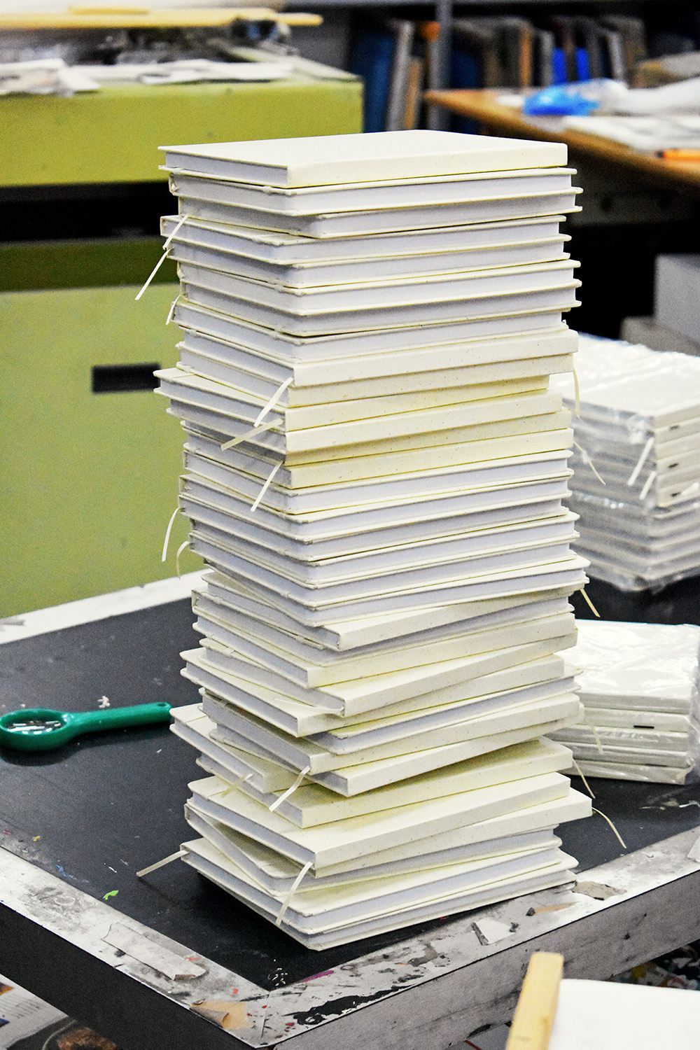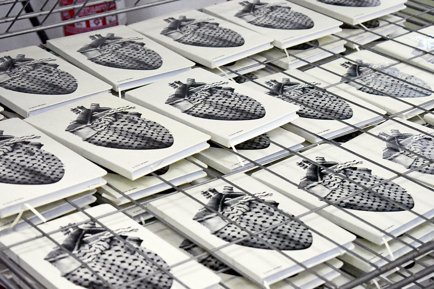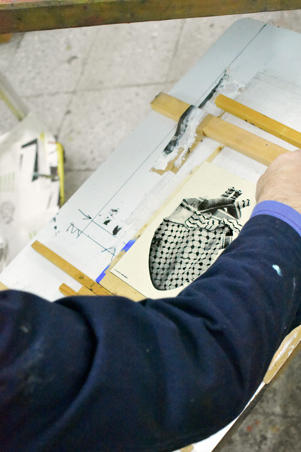 Para reproducir este corazón hicimos mogollón de pruebas. El lenguaje de la serigrafía se basa en tintas planas. Por eso las imágenes fotográficas es necesario tramarlas. Truquillos. Pero hay que saber qué lineatura y qué angulo. Y todo lleva su curro. Además la portada del bloc está plastificada y hay que averiguar qué tinta es la que mejor va a agarrar. Ese día llegó tarde la hora de la merienda en el taller.