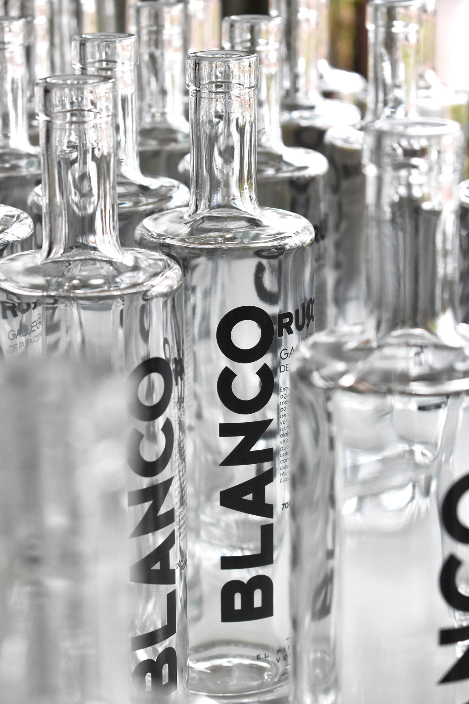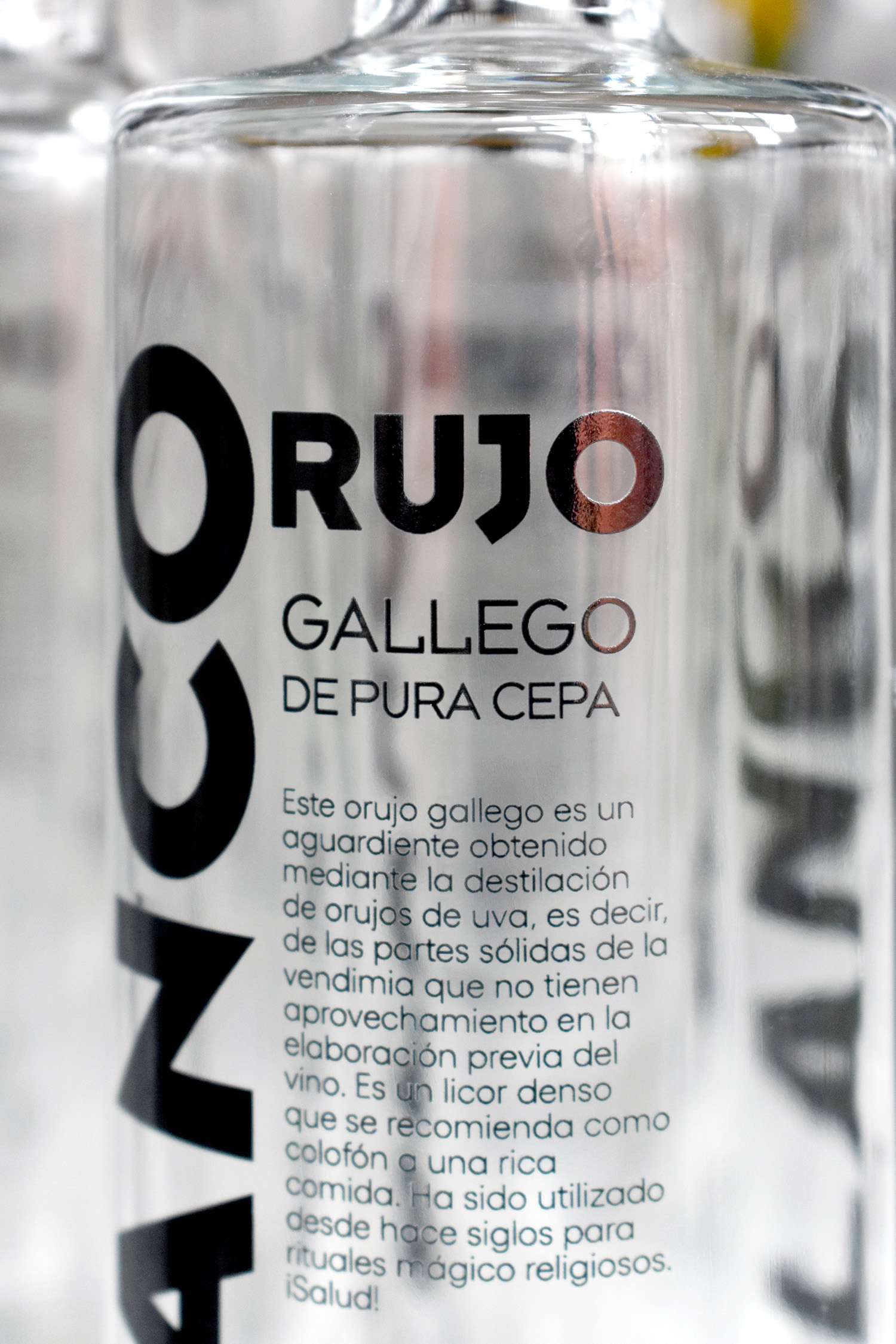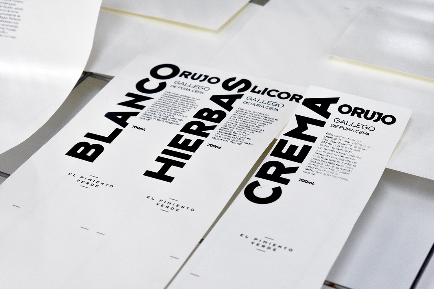 Curiosamente el orujo blanco lo hemos estampado con tinta negra. Han sido 50 botellas de cada bebida. Una fiesta.