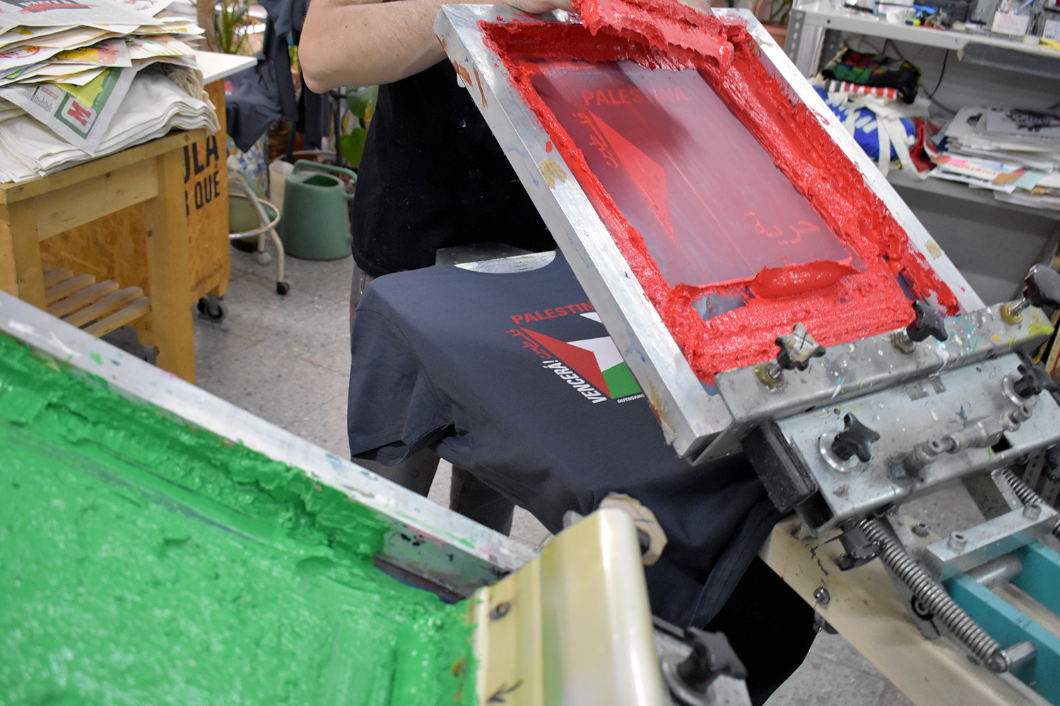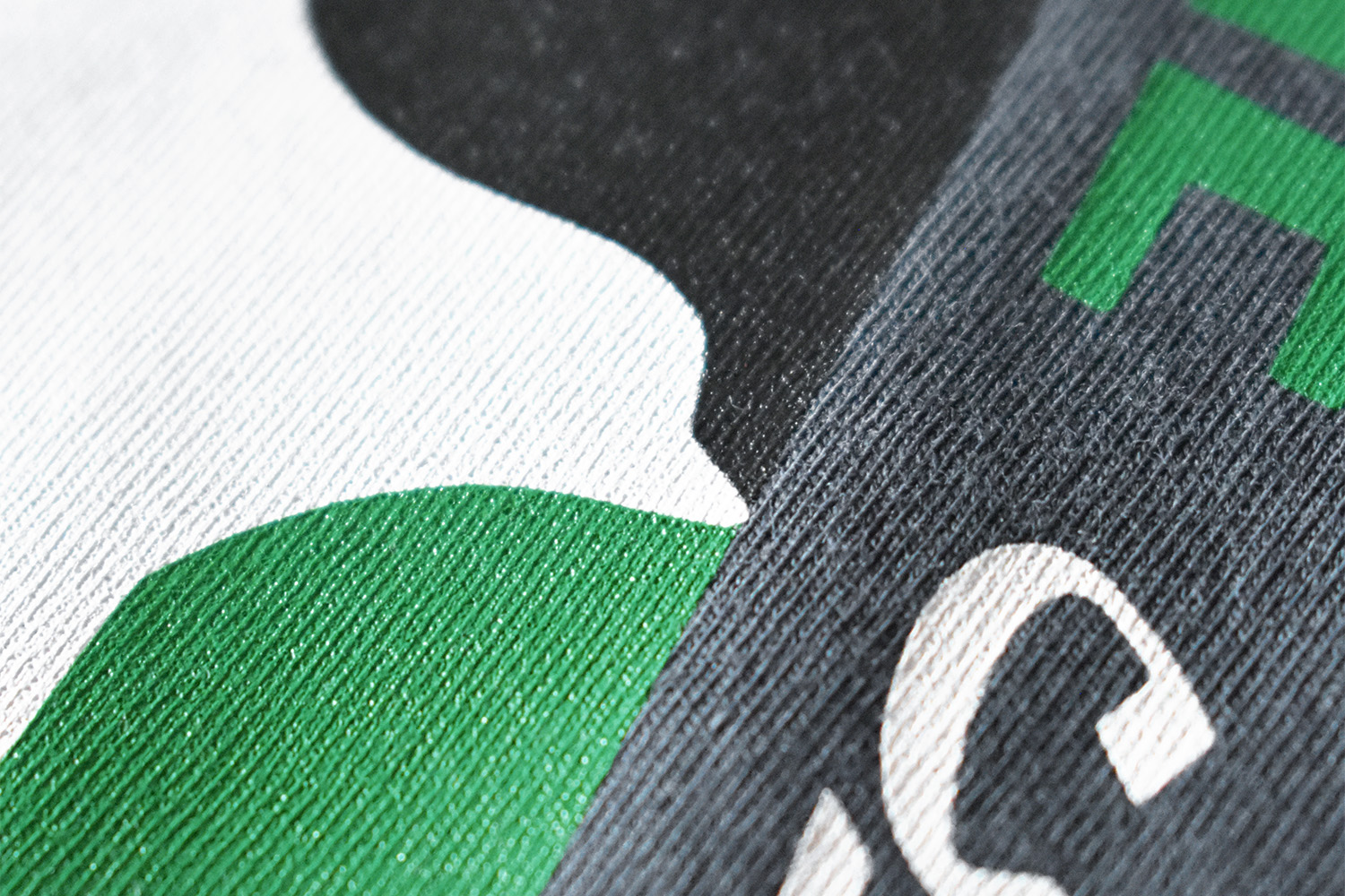 Serigrafía a 3 y 4 tintas sobre camisetas 100% algodón orgánico.