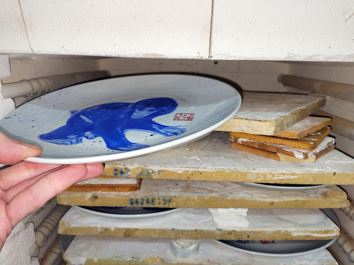 El trabajo ha sido largo de experimentación, buscando la mejor lineatura y ángulo en la fotomecánica y después probando distintas lineaturas de pantalla y tiempos de insolación. La viscosidad de la tinta cerámica y encontrar la cantidad de capas necesarias en la estampación también han sido otros factores clave. Pero era diciembre y ya empezaba a refrescar. Nos ha venido bien el ajetreo.