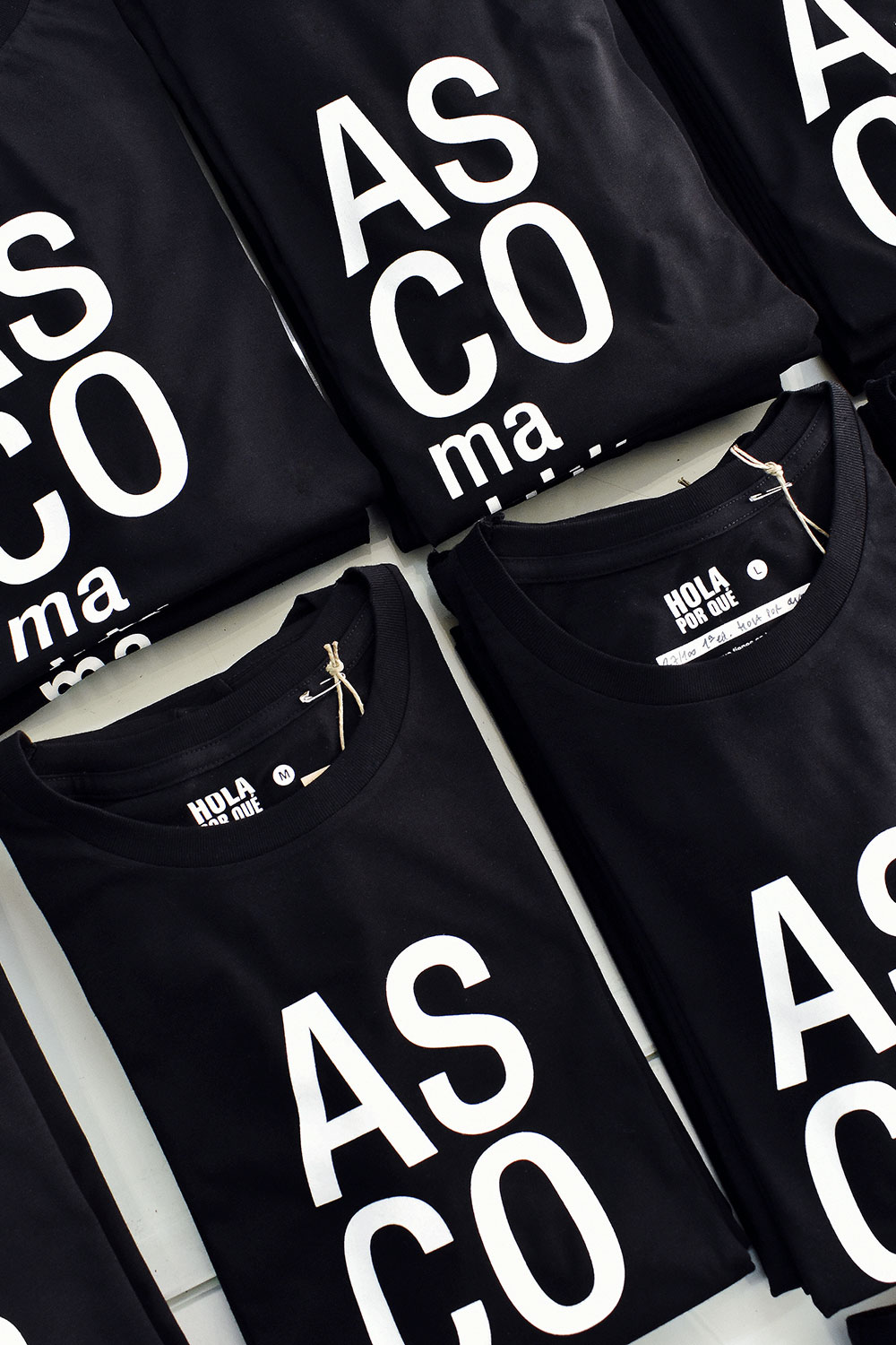 En 1998 diseñamos nuestra primera camiseta de ASCO. Hoy, con el cambio de logo, actualizamos el diseño. Como ahora han metido el nombre de la ciudad parece que va por la ciudad, no por la feria. Pero da igual, porque la ciudad también me da asco.